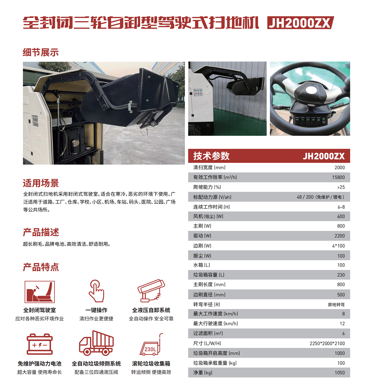 全封閉式掃地機采用封閉式駕駛室,適合在寒冷,惡劣的環(huán)境下使用,廣泛適用于道路、工廠、倉庫、學(xué)校、小區(qū)、機場、車站、碼頭、醫(yī)院、公園、廣場等公共場所。