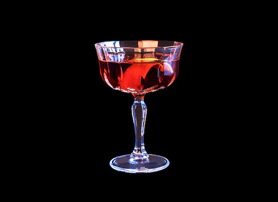 加冰攪勻,濾入冰過的雞尾酒杯。以一小片檸檬皮卷裝飾。