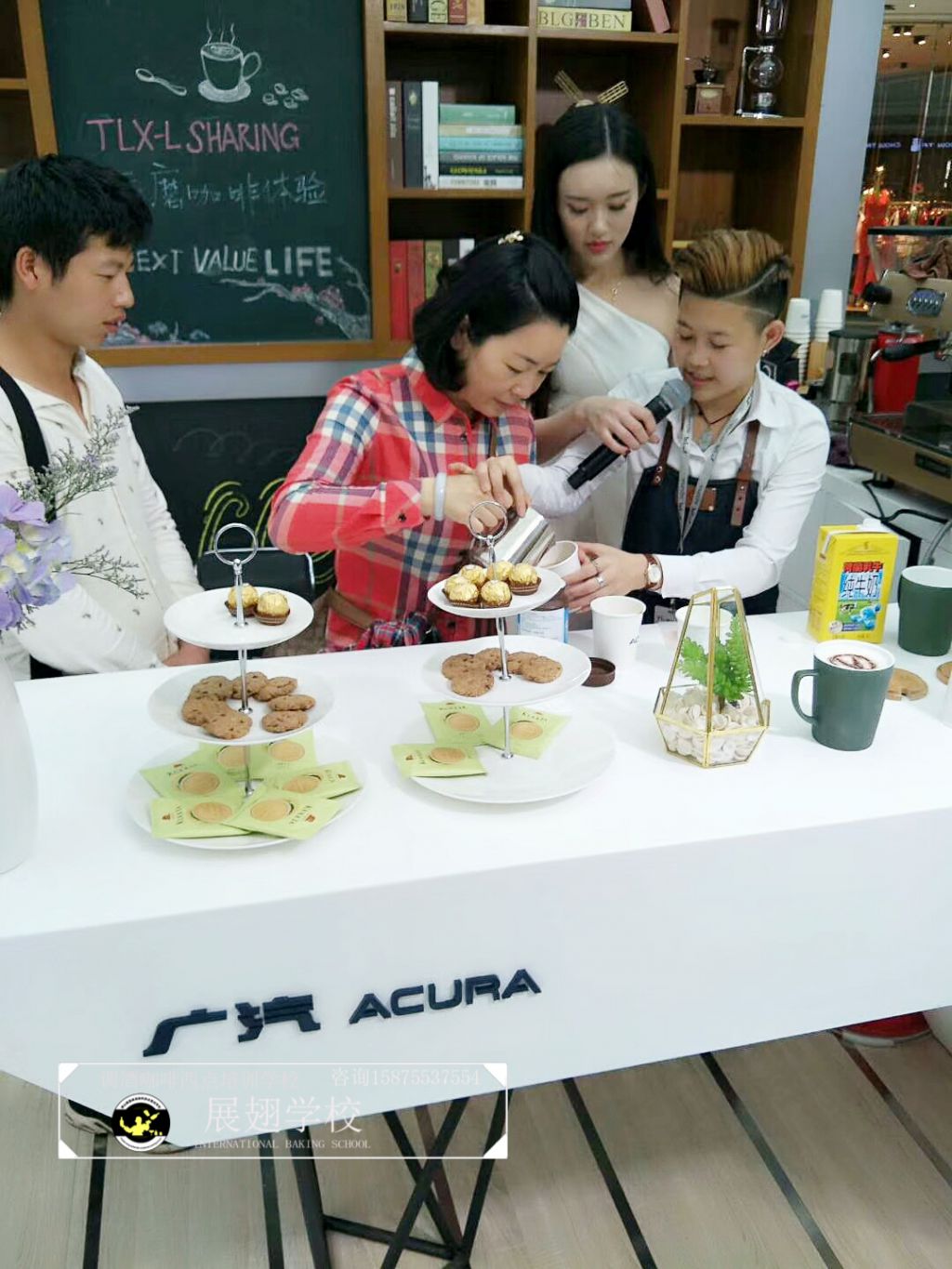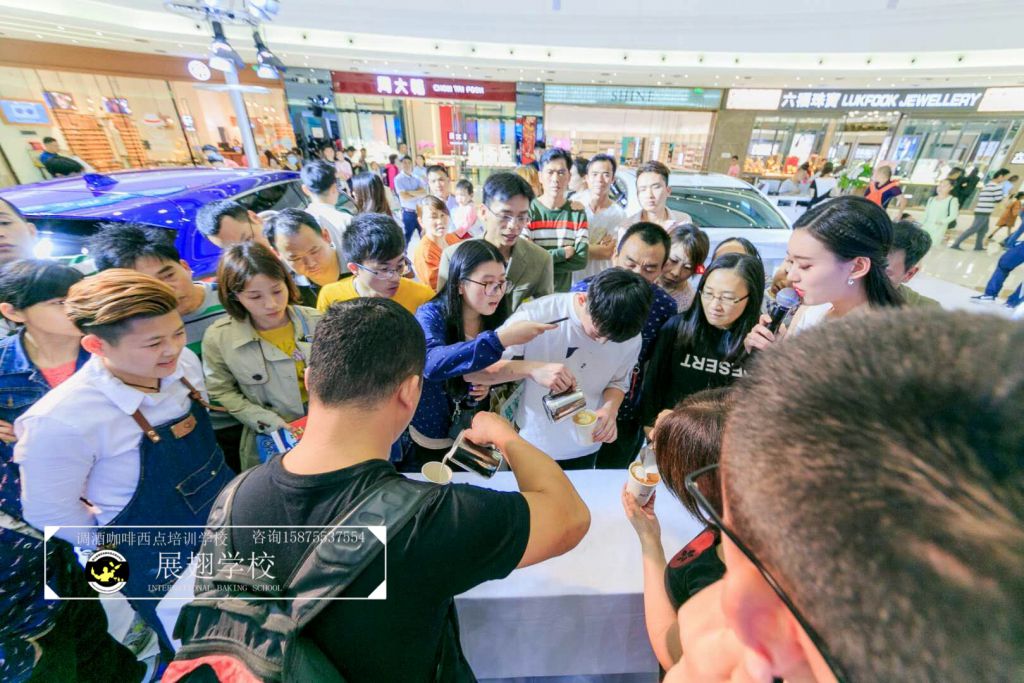 2018年16日~18日,佛山展翅調酒咖啡西點培訓學校的咖啡師參加了廣汽謳歌汽展暖場咖啡拉花活動,不僅現場為觀眾調制咖啡,更在現場教學如何拉花?,F場的觀眾朋友不僅能喝到咖啡師制作的美味咖啡,還能體驗一次咖啡拉花的樂趣,用流動的奶泡融合到濃縮咖啡中,并拉出精美好看的圖案。