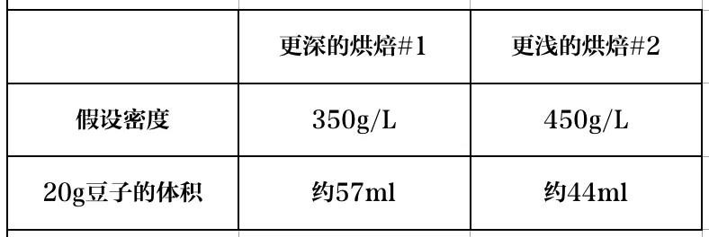 1、 即使生豆不一樣,其實(shí)你也可以通過直接測(cè)量熟豆密度,協(xié)助判斷一款既定熟豆的體積。
