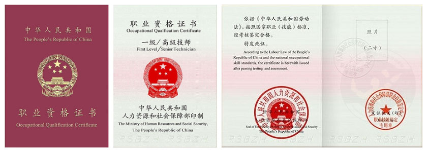 國家職業資格二級(技師樣板證書)